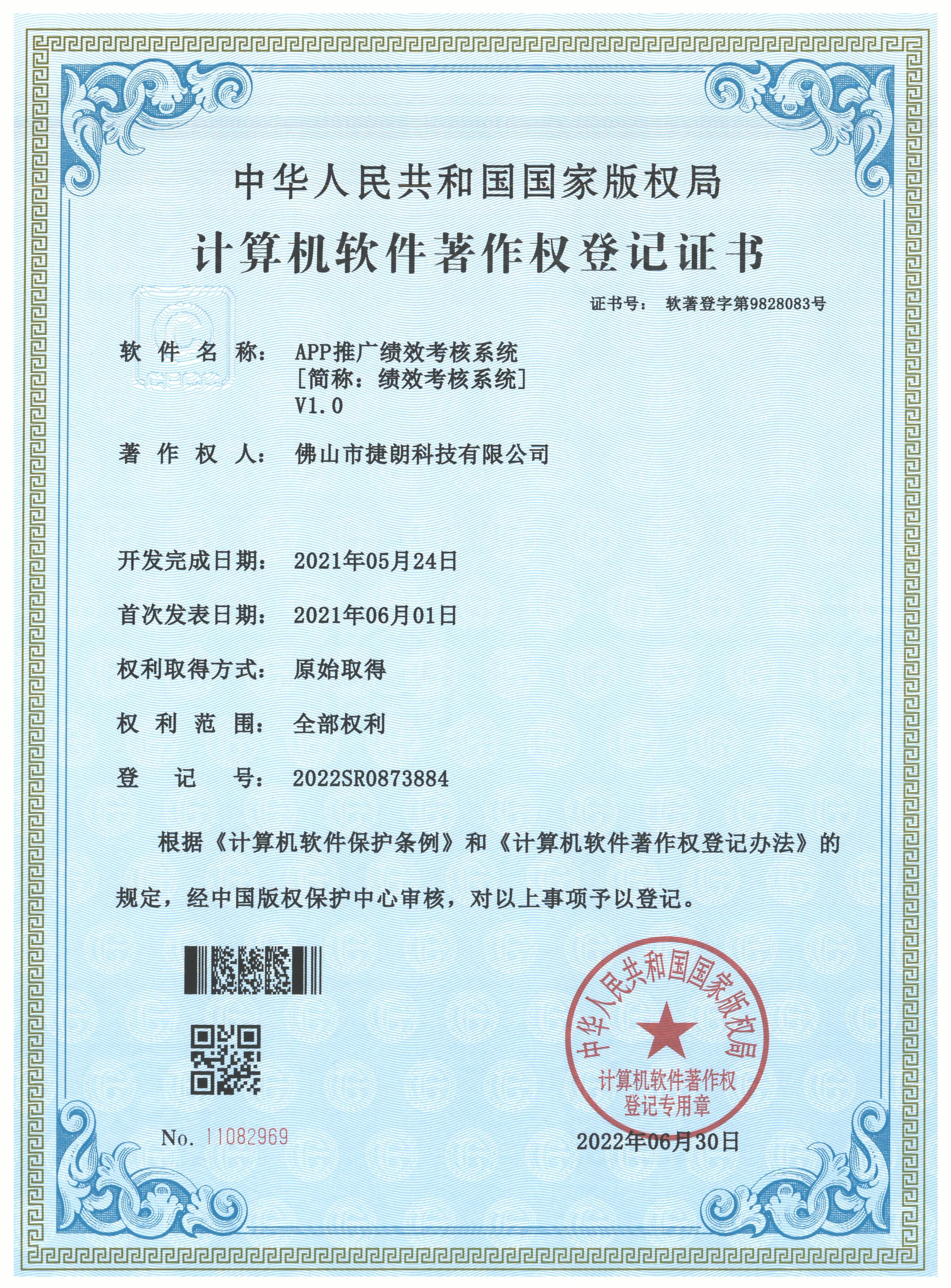 计算机软件著作权登记证书 software copyright registration certificate